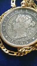 London Mint 1885 Jamaica Queen Victoria Coin Pendant 24" 18kgf Sterling Chain