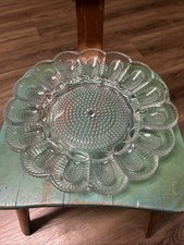 Vintage Heavy Pressed Glass Deviled Egg Plate 11in Hobnail Pattern Serving Tray