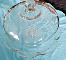 VINTAGE GLASS CAKE STAND dome LID Exquisite, platter floral imprint 11" x 12"