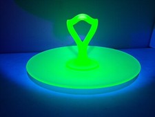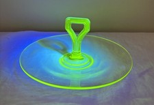Vintage Frosted Vaseline Uranium Glass Serving plate with Middle handle