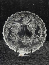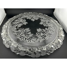Vintage Clear Glass Serving Platter Berry & Leaf Design Round Plate Tray