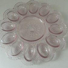 Vintage-Indiana Glass Inspired Deviled Egg Platter Easter Embossed Hobnail 10IN