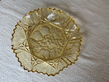 Vintage amber Glass Serving Platter plate bowl 11" rare raised pattern grapes