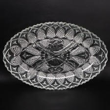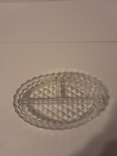 Thousand Eye Hobnail Boppie 11" Glass Divided Relish Platter Dish Vintage