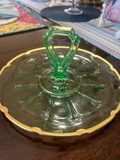 Vintage Diamond Glass Co Uranium Green & Gold Rim Sandwich Platter approx. 10 ½”