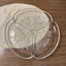 Vintage Imperial Glass Intaglio Fruit 3-Part Relish Dish Pear Orange Blackberry