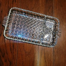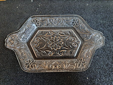 Antique Depression Glass Serving Plate Tray Dish tear drop art decor handles