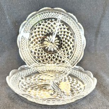 Set of 2 Vintage Crystal Glass Divided Relish Condiment Dish 8-1/2 in 3 Section