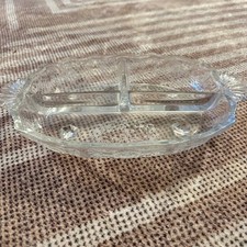 French Divided Relish Glass Dish Glass 12" x 7" Vintage 1960