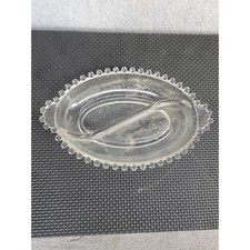Vintage Glass Relish Dish Divided Serving Tray with Beaded Edge 8" x 5"