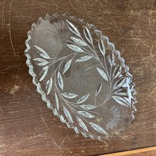 Vintage Oval Glass Etched Scalloped Serving Platter Dish 18x13.5