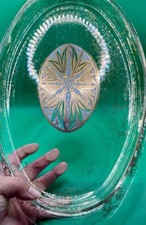 VINTAGE GLASS DEVILED EGGS SERVING TRAY WITH STARBURST MIDDLE