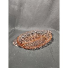 Anchor Hocking OYSTER AND PEARL Pink Glass Oval Divided Relish Dish Vintage 30s
