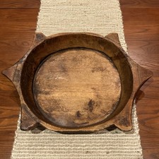 Antique Vintage Large Wooden Parat Bowl - Indian Turtle Dough Tray