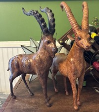 2 ANTIQUE VTG IBEX MOUNTAIN GOATS LEATHER WRAPPED FIGURINES STATUES FIGURE LARGE