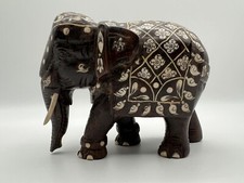 Antique 19th Century Hand-Carved Dark Wood Elephant w Inlay ~8x6x4"