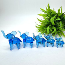 Vintage Elephant Figurines Hand Blown Cobalt Blue Glass Family 5 Graduated Sizes