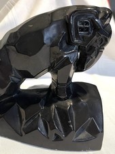 Vintage Art Deco Elephant Sculpture Black Glass Faceted Geometric Design 1930’s