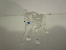 Miniature Hand Blown Glass Elephant with Blue Eyes 2" Figurine Vintage Estate