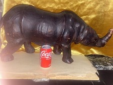 Antique Vintage Large Leather Rhinoceros Figurine Glass Eyes Oddities 28” Long