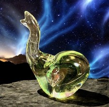 Vintage Williamsburg Glass Co Art Glass Hand Blown Elephant Paperweight TRUNK UP