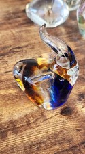 Vintage Hand Blown Glass Elephant Trunk Up Amber Blue 3.5" x 2.75" Paperweight