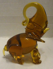 Vintage Elephant Amber Glass Trunk Up Paperweight Art Glass 2” Tall