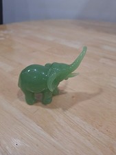 Vintage Jade Green Glass Elephant Lucky Trunk Up Figurine Hand Blown 3 in