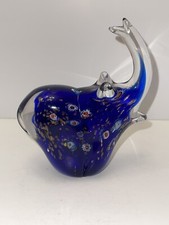 Vintage Murano Style Cobalt Blue Handmade Art Glass Elephant