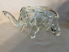 Vintage Art Glass Elephant Sculpture Crystal Clear Elephant Figurine 3.5" tall