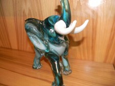 Vintage Colorful Art Glass Elephant Raised Trunk For Good Luck