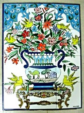 24" x 36" Hand painted Ceramic tile art panel Mosaic wall mural vase Backsplash