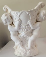Vtg Cement Shabby Chic Planter Cherubs And Ram 6in
