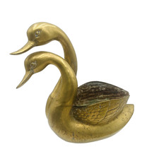 Large Cast Brass w Patina Double Headed Swan Cachepot Planter Mid Century Heavy
