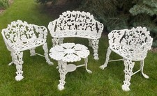 Vintage Victorian Style Grapevine Leaf Settee, 2 Chairs & Table Set