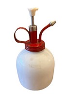 VTG Taiwan Milk Glass Plant Mister Red Metal Sprayer Mid Century Style