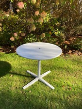 VTG 1950s MID-CENTURY MODERN ROUND WHITE METAL GARDEN PATIO DECK UMBRELLA TABLE