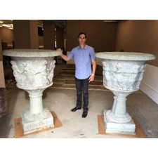 Pair of Palace Size Early to Mid 20th Century Italian Carved Marble Urns