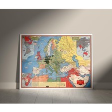 Map Wall Decor WWII Vintage Reproduction Poster Home Office Art