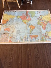 WW11 maps World Map very large 50"x38" Military History of past boarders antique