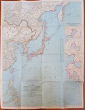 1944 Dated WW2 Vintage MAP of JAPAN, REGIONS of ASIA & PACIFIC OCEAN Original