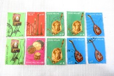 10 Greek Antique Musical Instruments GREECE Cancelled Postage Stamps 1975