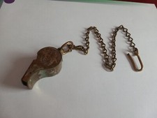 Antique Vintage Solid Brass Whistle USA w/Chain