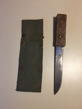 Antique WWII US Army Green Canvas Holster Serrated Knife Wooden Handle