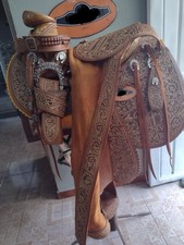 Tooled leather western horse saddle antique