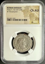 Philip II Tetradrachm — NGC Ch AU — Roman Coin, AD 247-249