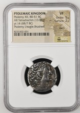 Ptolemy XII AR Tetradrachm 68/7 BC Silver Coin NGC VF Strike 5/5