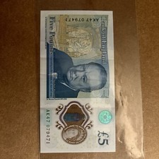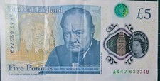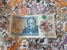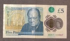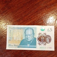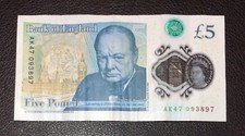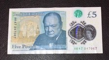 AK 47 Prefix £5 Pound Polymer Note, Winston Churchill, Unique Serial Number Rare