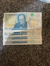 AK47 £5 Note Genuine Banknotes Five Pound with 4 consecutive numbers •SET OF 4•