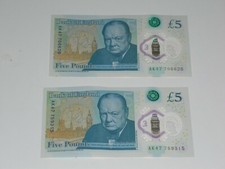 2x RARE AK47 LOW SERIAL NUMBER £5 GBP POUND NOTE PLASTIC POLYMER AK-47 1ST ISSUE